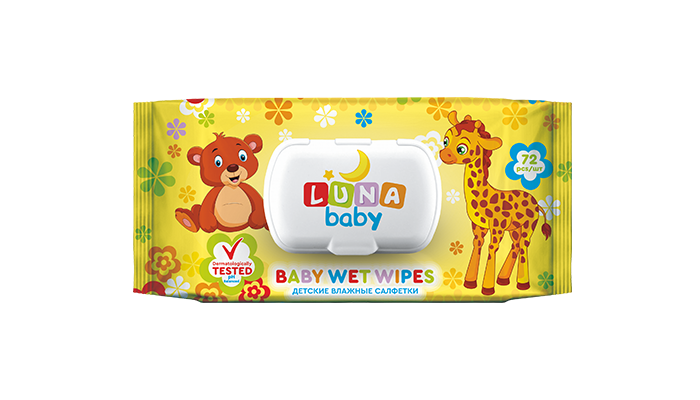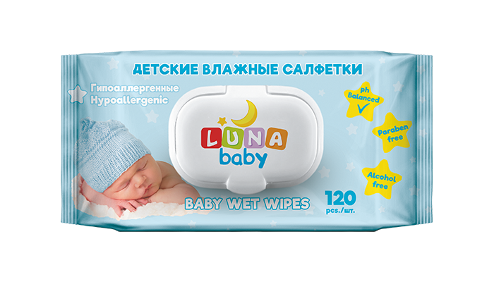 Каталогта 1-ден 120 данаға дейін қаптамада қалтаға салынатын және үлкен дымқыл майлық форматтары бар. Оларды үйді таза ұстау, тері күтімі және макияжды кетіру құралы ретінде қолдануға болады. Luna Baby жеке балалар желісі баланың нәзік терісіне күтім жасауға көмектеседі, аллергия тудырмайды және қолдануға ыңғайлы.